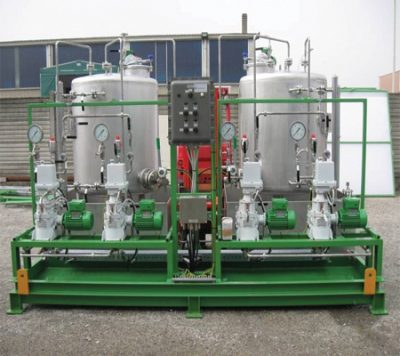 The packages further consist of a multi compartment tank, suction and discharge lines valves and instrumentation. The injection rate of the chemicals is adjustable by a variable pump stroke length or a frequency drive of the (electric) motor.