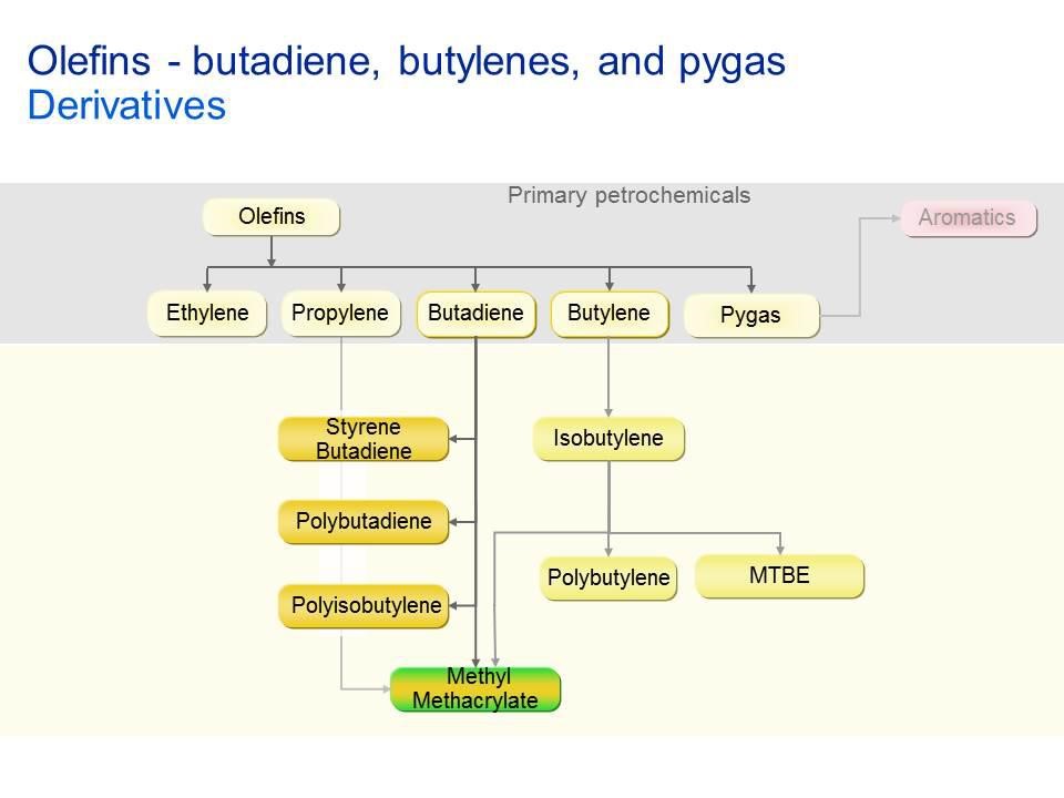 Petrochemical plant produces olefins and aromatics by fluid catalytic cracking of petroleum fractions. Chemical plants produce olefins by steam cracking of natural gas liquids like ethane and propane. Aromatics are produced by catalytic reforming of naphtha. Olefins and aromatics are the building-blocks for a wide range of materials such as solvents, detergents, and adhesives. Olefins are the basis for polymers and oligomers used in plastics, resins, fibers, elastomers, lubricants, and gels